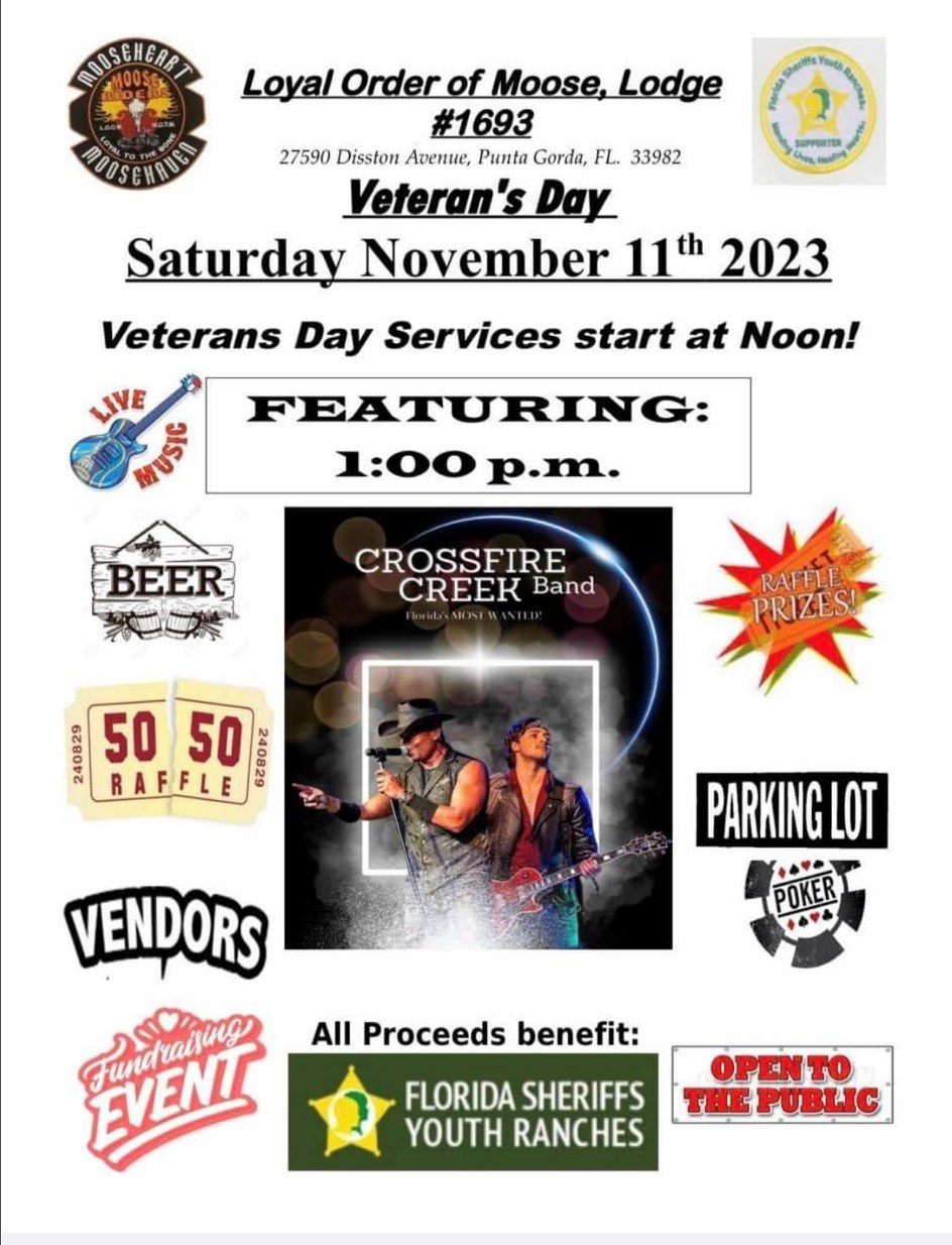 On Saturday, November 11, 2023 Moose Lodge #1693 located in Punta Gorda, Florida will hold a Veteran’s Day Fundraiser event to benefit the Florida Sheriffs Youth Ranches.