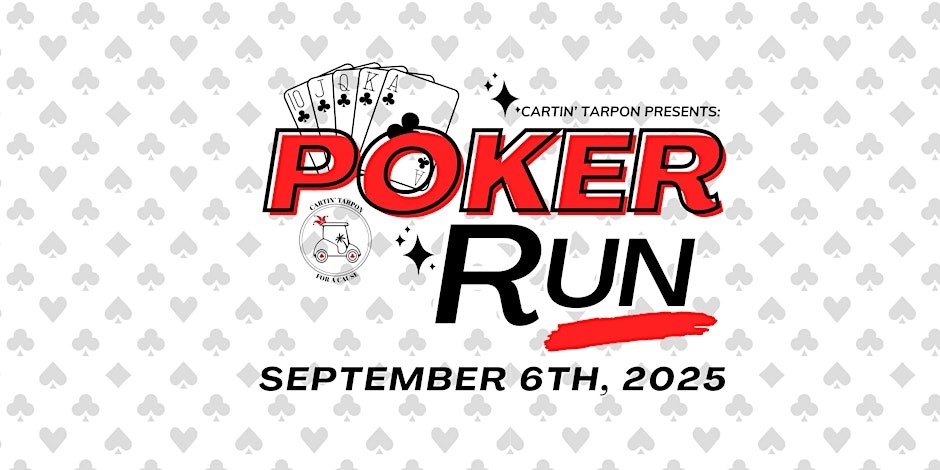 Cartin' Tarpon Poker Run 2025 When: Saturday, September 6, 2025 - 3:00PM to 10:00PM Where: Check In at Brighter Days Brewing Company located at 311 North Safford Avenue Tarpon Springs, FL 34689 Get excited for round TWO of the Cartin' Tarpon Poker Run! Bikes, scooters, motorcycles, cars, run, walk, golf carts, all are welcome! Roll, […]